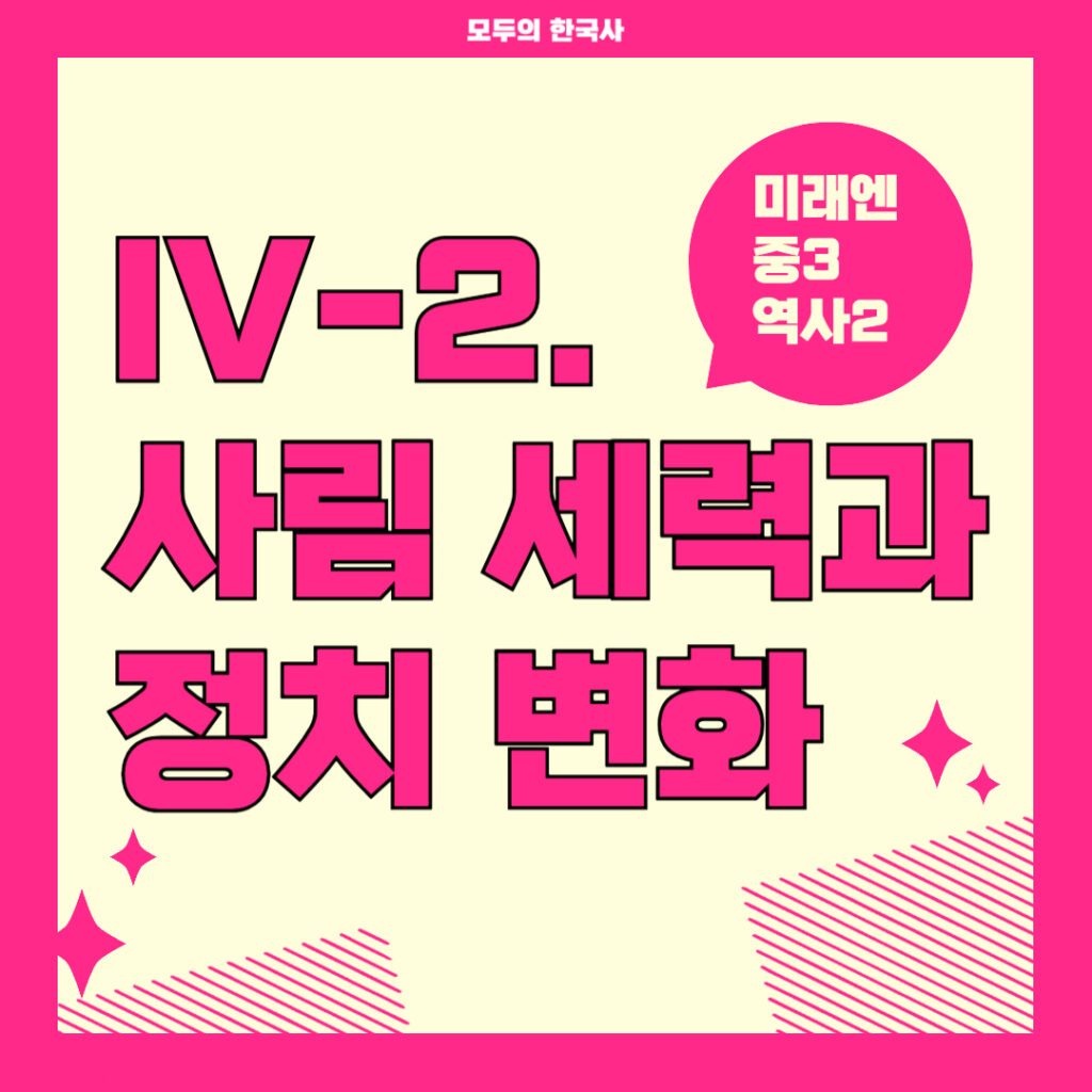 - 붕당(朋黨) 형성: 사림 세력 내부 정치적 의견 대립 → 정치 집단 형성.