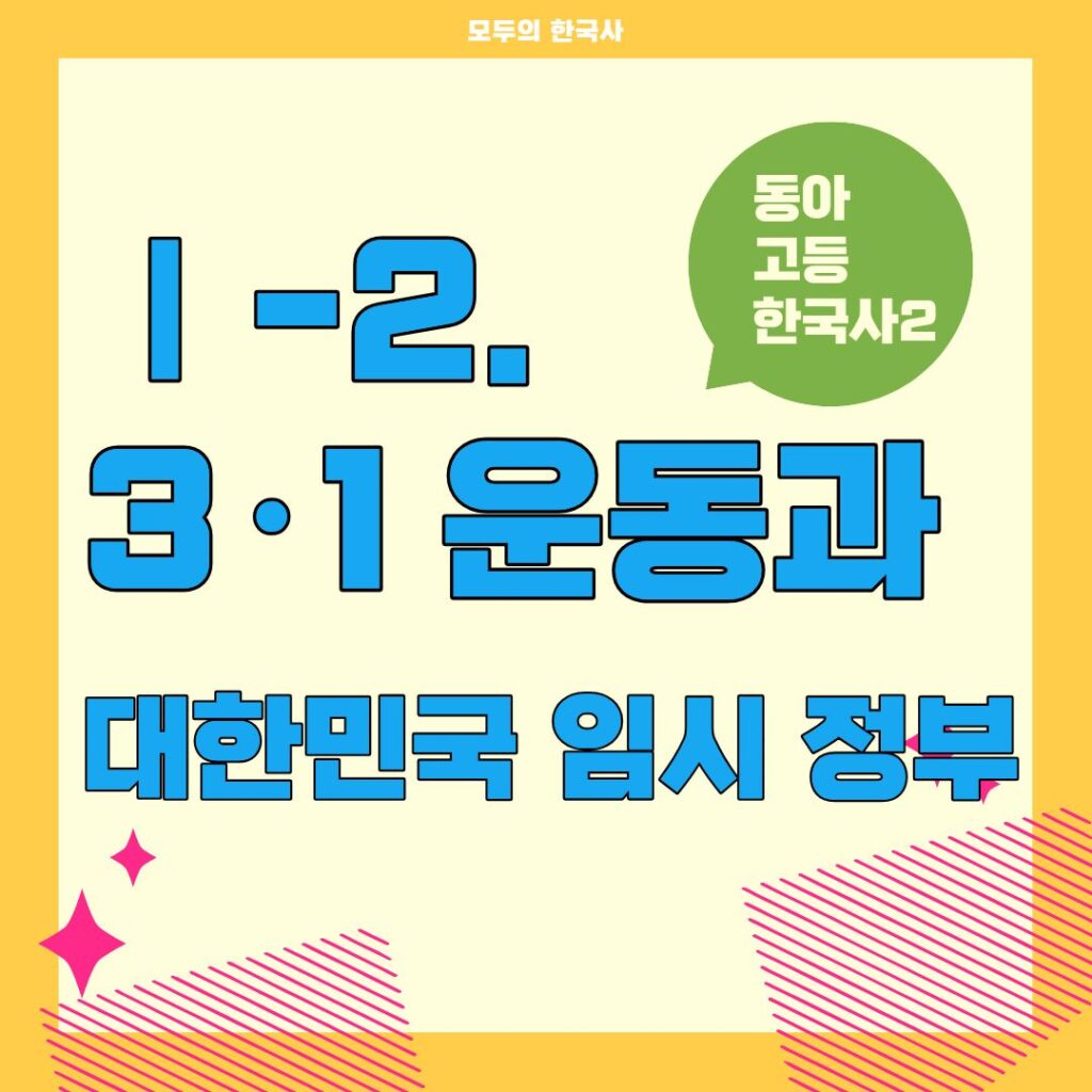 - 수립: 3·1 운동 직후 국내외 여러 임시 정부(연해주 대한 국민 의회, 상하이 임시 정부, 국내 한성 정부) 수립 → 상하이에서 통합 (한성 정부 법통 계승).